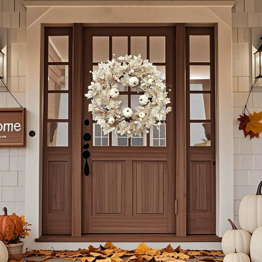 26 Inch Large Foldable Fall Wreath for Front Door with Lights Timer, Autumn Maple Leaf Pumpkin Wreaths & 88 Silk Maple Leaves 22 Pumpkins Indoor Outdoor Decorations for Home Thanksgiving Harvest Decor