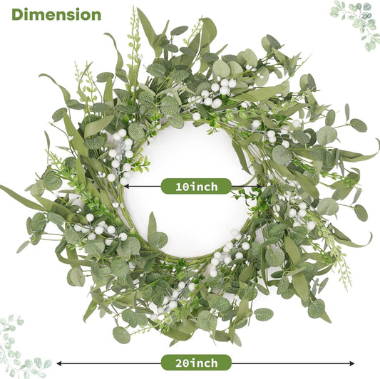 Artificial Eucalyptus Wreath for Front Door, Spring Summer Wreath with Boxwood for Window Wedding Decor Home Porch Farmhouse Patio Garden Decor 20 Inch